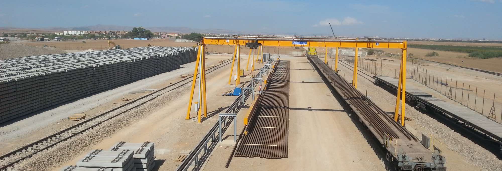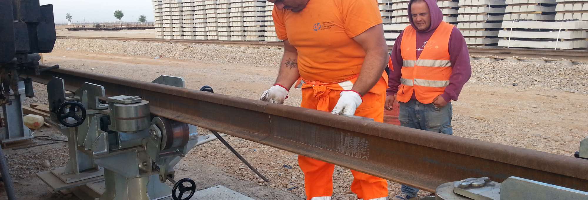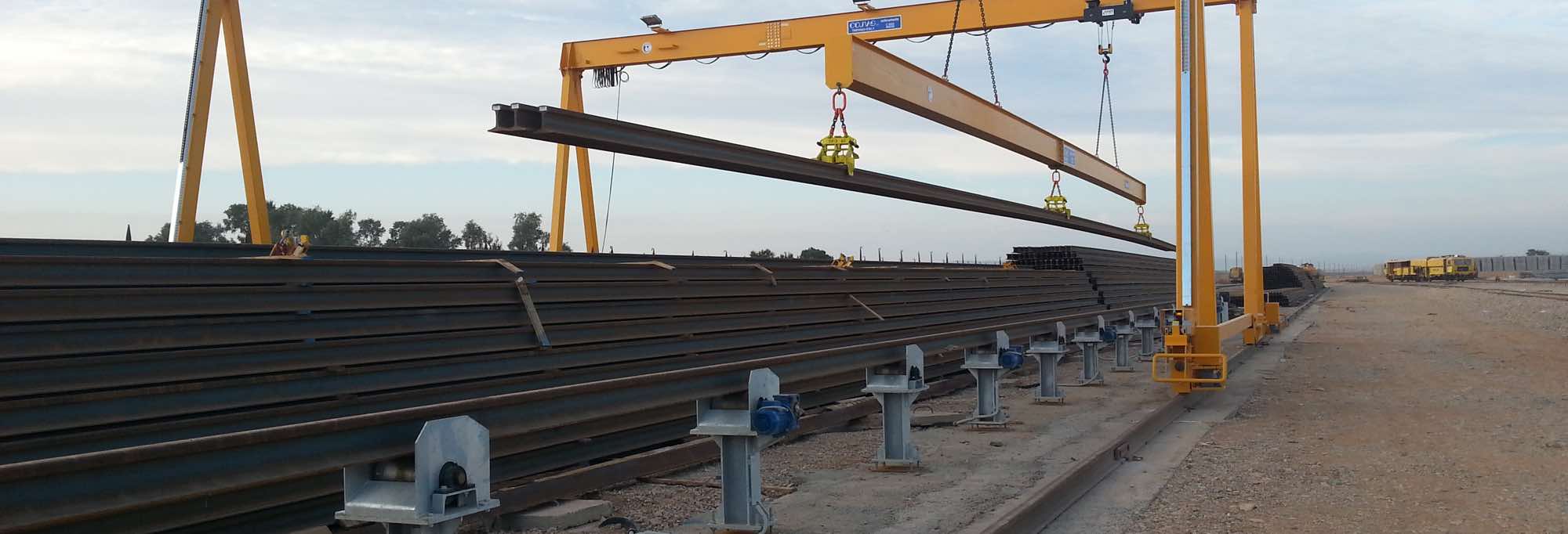 - Movimentazione delle rotaie da 36 mt. tra i magazzini di stoccaggio e la linea di convogliamento