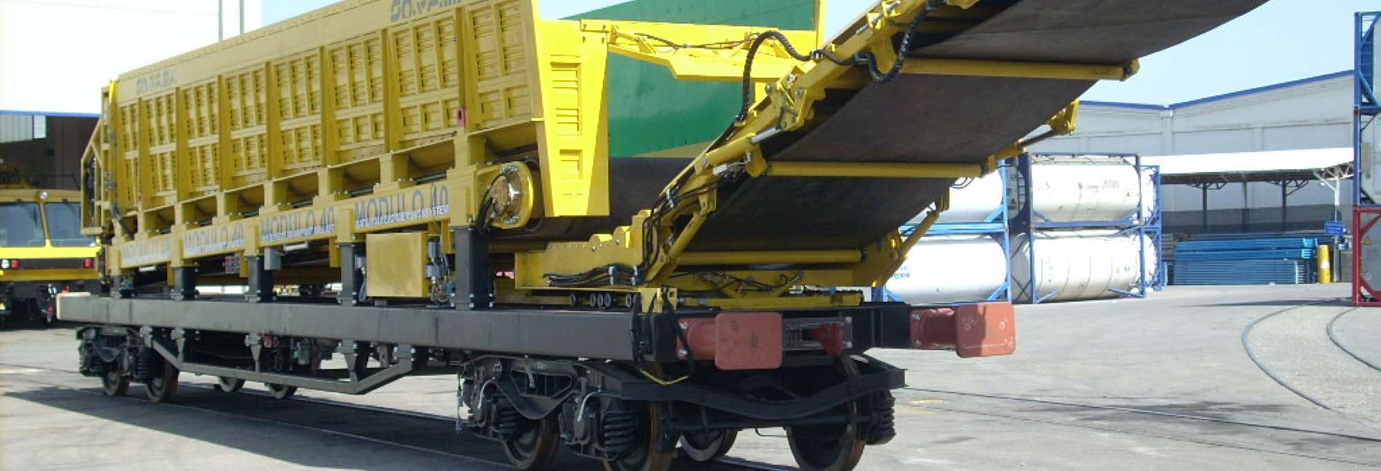 Innovativo sistema per il trasporto e lo scarico del pietrisco consistente in un “contenitore” da 40 m3, posizionabile su qualunque carro pianale, e trasportabile, nel rispetto delle dimensioni consentite, a mezzo semirimorchio.