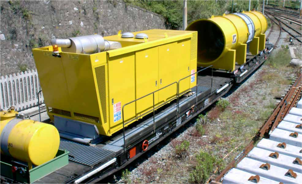 Scopo del carro ventola è l’aspirazione dei fumi presenti in galleria, mediante l’impiego di un elettroventilatore assiale posto su un primo carro e di un gruppo elettrogeneratore posizionato sul secondo carro.