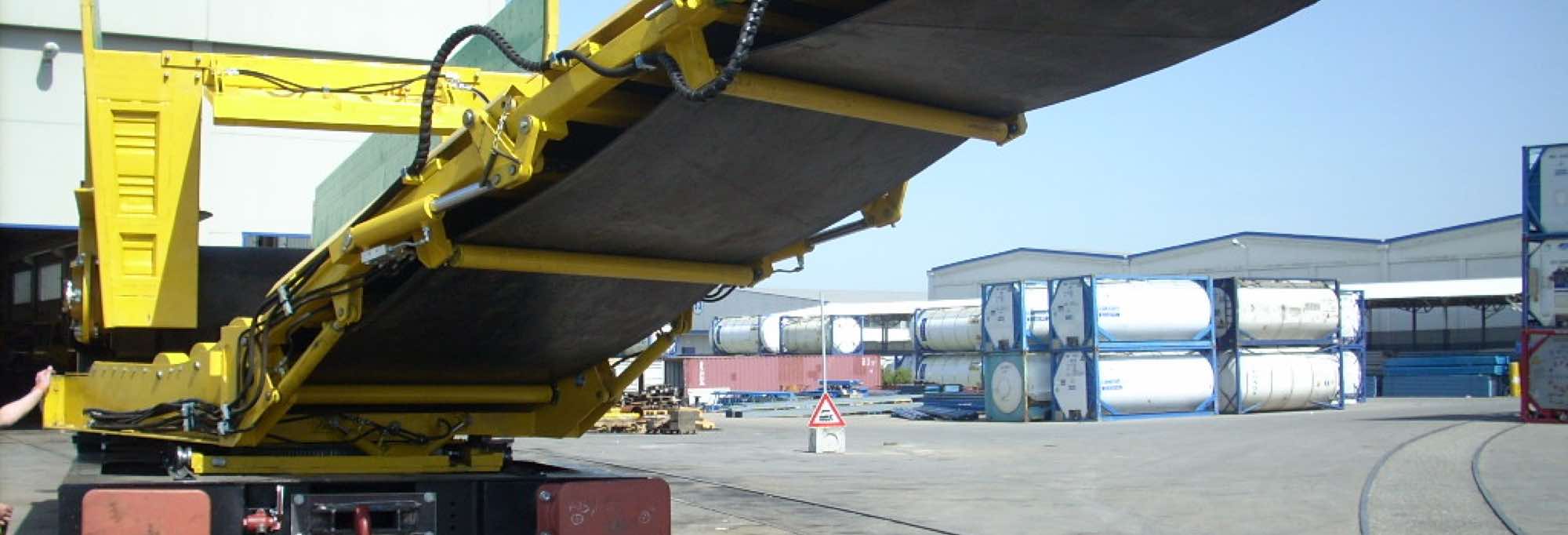 Tale nastro frontale scarica il materiale nella successiva tramoggia o lateralmente in un luogo prescelto (dx o sx). Più tramogge, montate su carri ferroviari, sono idonee al trasporto di ogni tipo di materiale e possono essere composte in treni della lunghezza necessaria.